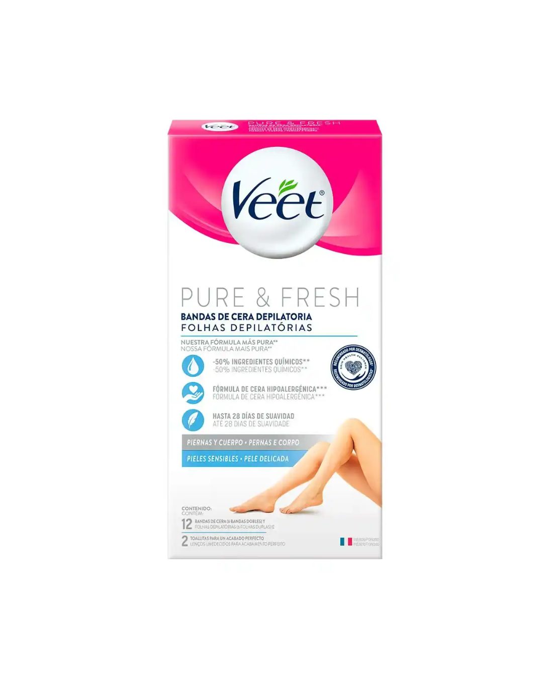 As Folhas Depilatórias Veet Pure & Fresh Pernas e Corpo foram desenvolvidas para proporcionar uma depilação eficaz, prática e segura, removendo os pelos desde a raiz e deixando a pele suave e lisa por até 28 dias. Sua nova fórmula mais pura contém 50% menos ingredientes químicos comparada às versões anteriores, sendo ideal para quem busca uma depilação mais delicada e com menor risco de irritações.