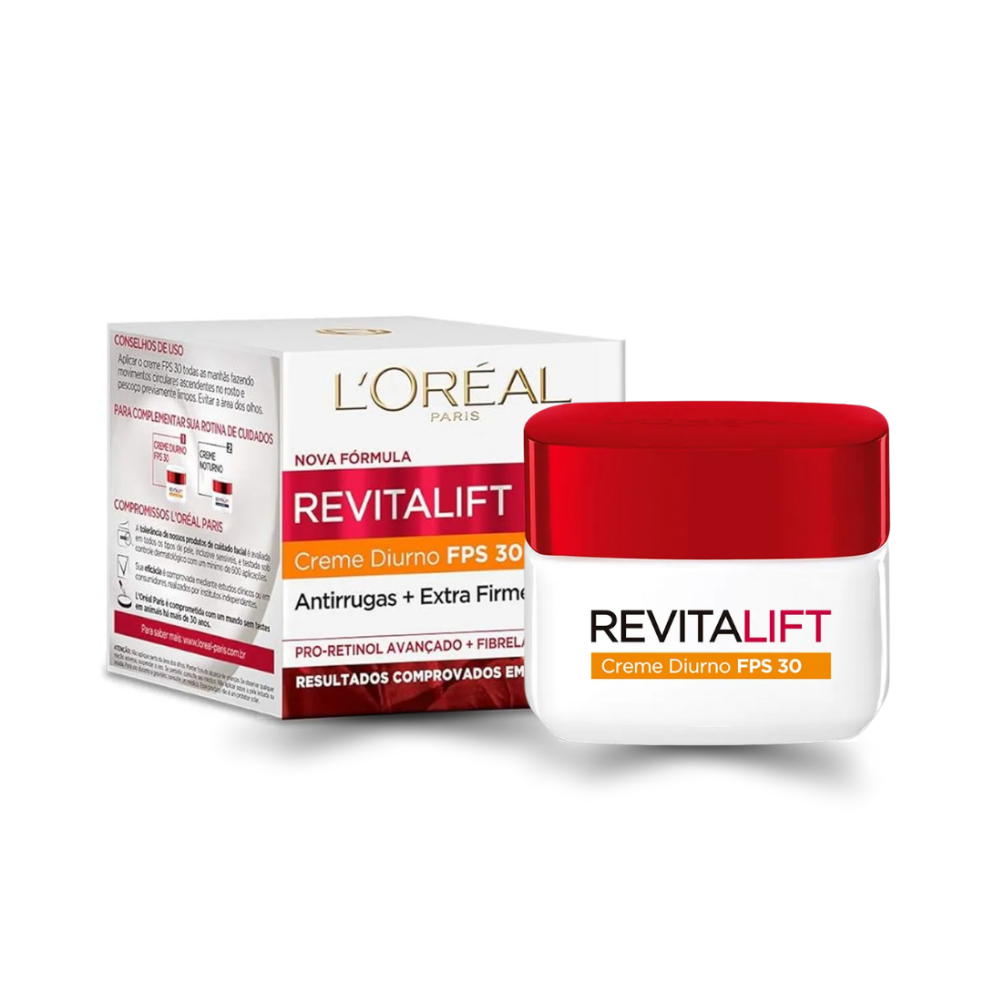 O Creme de tratamento anti-idade diurno intenso de L'Oréal Paris para todos os tipos de pele. O creme Revitalift Diurno possui textura leve e nutritiva para tratamento das rugas, firmeza da pele e contornos definidos. Revitalift Diurno possui excelente eficácia Antirrugas devido a presença de Pro-Retinol A, um poderoso ativo que estimula a renovação celular. Rugas ainda mais profundas são visivelmente suavizadas e a pele têm sua aparência uniformizada.