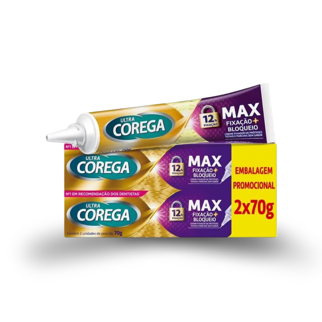 O Creme Fixador de Dentadura Ultra Corega Max Sem Sabor garante segurança, conforto e liberdade ao utilizar sua prótese dentária. Com fixação de até 12 horas, forma um selo protetor que bloqueia a entrada de partículas de alimentos entre a gengiva e a prótese, ajudando a prevenir irritações e proporcionando mais confiança no dia a dia.