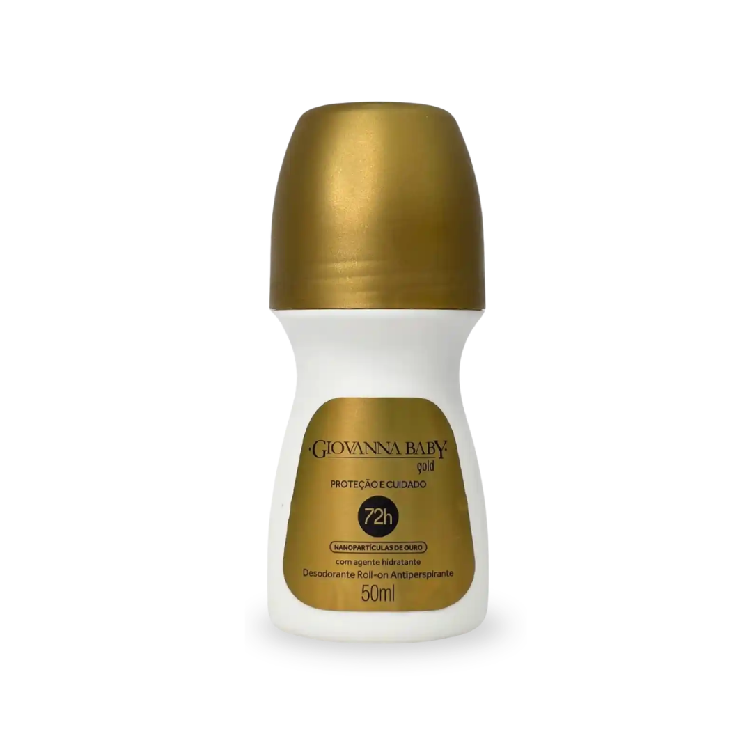 O Desodorante Roll-On Gold da Giovanna Baby oferece alta proteção antitranspirante por até 72 horas, mantendo a pele macia e protegida contra o suor e odor.