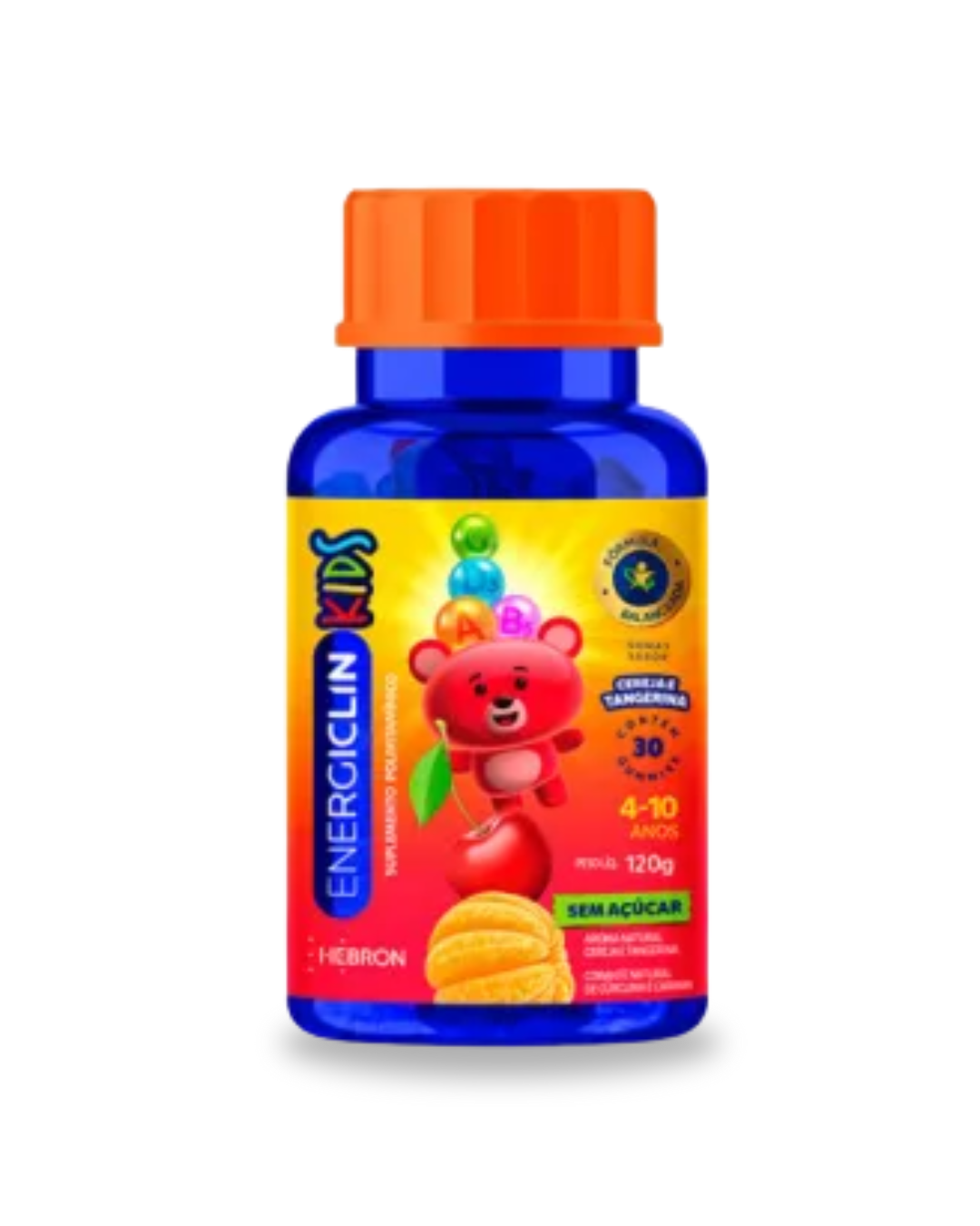 Energiclin Kids é um suplemento infantil em gomas desenvolvido para ajudar a complementar a alimentação das crianças com vitaminas e minerais essenciais ao crescimento e ao bom funcionamento do organismo. Com sabores agradáveis de cereja e tangerina, as gomas são fáceis de consumir e tornam a suplementação mais prática no dia a dia.