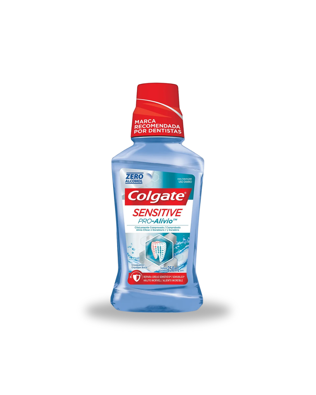 O Enxaguante Bucal Colgate Sensitive Pro-Alívio foi desenvolvido especialmente para pessoas com dentes sensíveis, proporcionando alívio clínico e imediato da sensibilidade com o uso contínuo. Sua fórmula sem álcool é suave e eficaz, ajudando a proteger os dentes contra os estímulos que causam dor, além de oferecer sensação de frescor e limpeza duradoura.