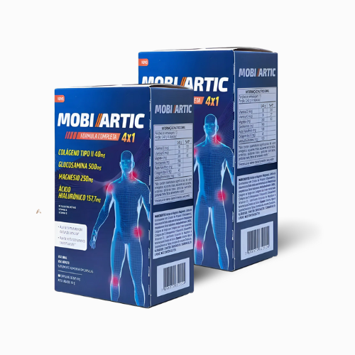 (Kit Exclusivo com 2 Unidades) para tratamento: Mobiartic é um suplemento vitamínico desenvolvido para auxiliar na proteção das articulações, na redução de dores articulares e na recuperação da mobilidade. Sua fórmula atua como um tratamento contínuo, reunindo uma combinação exclusiva de Colágeno tipo II, Ácido Hialurônico, Magnésio e Glucosamina, nutrientes essenciais para a manutenção da saúde articular.