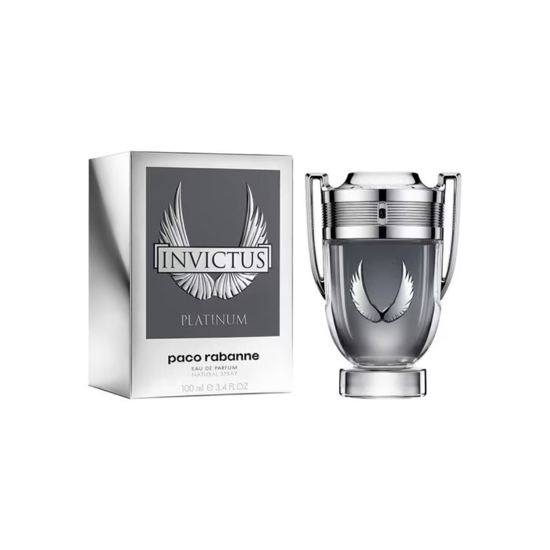 O icônico frasco em formato de troféu ganha acabamento prateado luxuoso. As asas de Invictus surgem em relevo na platina, transmitindo vitória, poder e superação. O vidro exibe tons de cinza que se intensificam em direção ao cromo, coroando a fragrância como um verdadeiro símbolo de conquista.