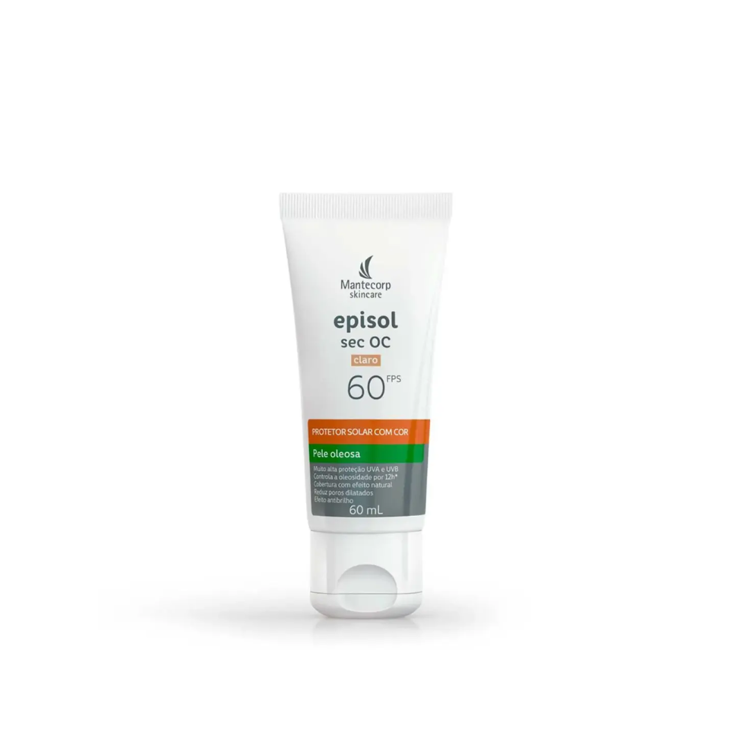 O Episol Sec OC FPS 60 Claro, da Mantecorp Skincare, é um protetor solar facial desenvolvido especialmente para peles oleosas e acneicas, oferecendo alta proteção contra os raios UVA, UVB e Infravermelho A.