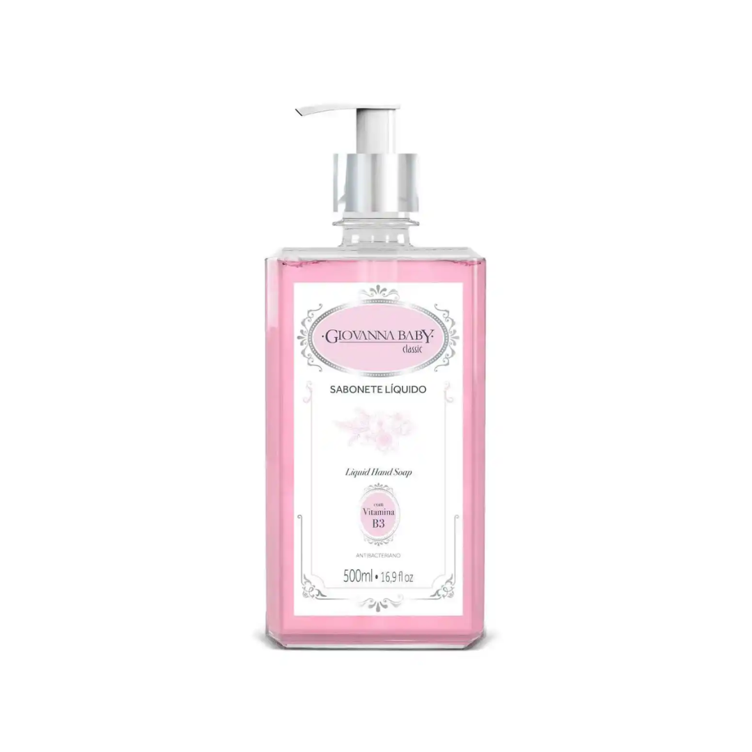 A embalagem contém 1 frasco de sabonete líquido antibacteriano Giovanna Baby Classic com 500ml.