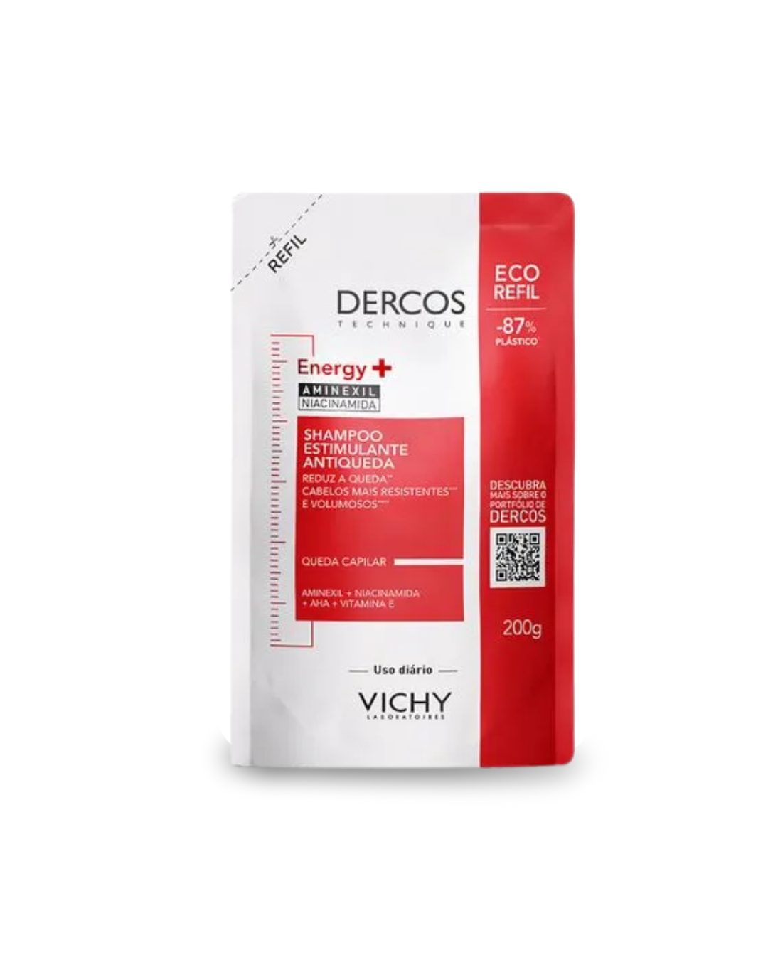 O Shampoo Dercos Energizante Refil foi desenvolvido pela Vichy para fortalecer os fios e auxiliar no combate à queda capilar de origem não patológica. Sua fórmula contém Aminexil e vitaminas do complexo B, que atuam diretamente na fibra capilar, tornando o cabelo mais resistente desde a raiz.