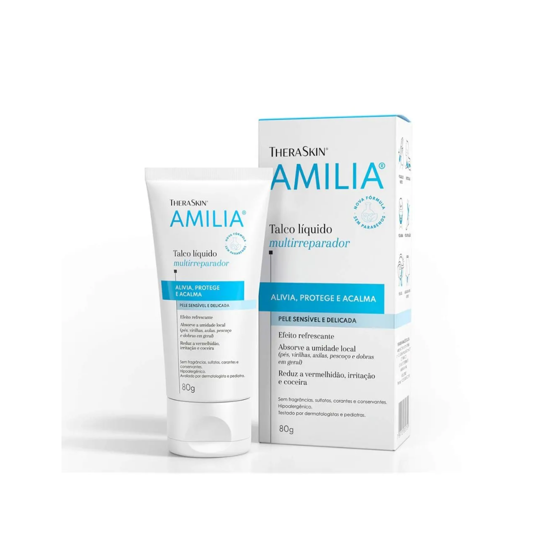 O Talco Líquido Amilia Theraskin é um cuidado diário desenvolvido especialmente para proteger e hidratar a pele delicada, ajudando a prevenir assaduras e irritações causadas pelo atrito e pela umidade. Sua fórmula forma uma barreira protetora suave, mantendo a pele seca, macia e confortável por mais tempo.